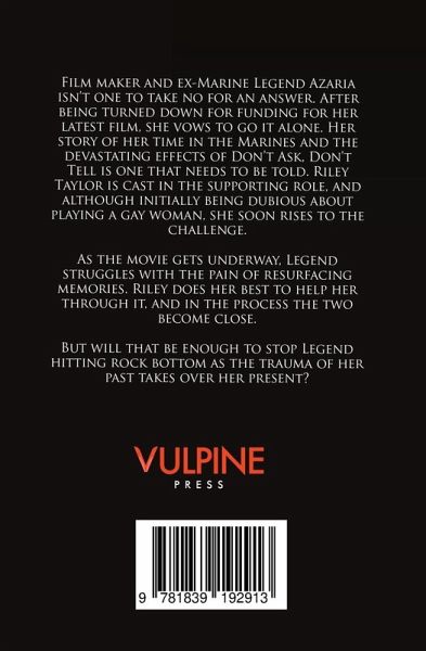 Film maker and exMarine Legend Azaria isn't one to take no for an answer. After being turned down for funding for her latest film, she vows to go it alone. Her story of her time in the Marines and the devastating effects of Don't Ask, Don't Tell is one that needs to be told. Riley Taylor is cast in the supporting role, and although initially being dubious about playing a gay woman, she soon rises to the challenge. As the movie gets underway, Legend struggles with the pain of resurfacing memories. Riley does her best to help her through it, and in the process the two become close. But will that be enough to stop Legend hitting rock bottom as the trauma of her past takes over her present?