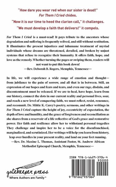 Rev. Dr. Mittie K. Carey, the fourth of six children, was born in the rural South. Her father was both a Baptist pastor and a sharecropper, and her mother was, and still is, the epitome of a strong Christian woman of unwavering faith. Mittie's upbringing and personal journey bolster her empathic love for the marginalized, her inalienable voice, and her resolve to use them both across all available avenues, for the glory of God. They were also instrumental in her attaining a Bachelor of Science in Marketing from Christian Brothers University, Memphis, Tennessee; a Master of Divinity from Memphis Theological Seminary; and a PhD in Communication from the University of Memphis. She unapologetically adores her family-her nonagenarian mother, Mrs. Mary A. Knowles, her husband Jesse, her two adult sons, her four amazing grandchildren, and her beautiful and brilliant great-granddaughter.
