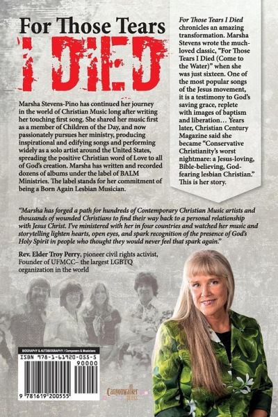 "The mother of contemporary Christian music" - Excerpt from "The Encyclopedia of Contemporary Christian Music", Sept. 2002 "She is Conservative Christianity’s worst nightmare: a Jesus-loving, Bible-believing, God-fearing lesbian Christian." - Christian Century Magazine At just 16, Marsha Carter (now Stevens-Pino) shared her newly born-again Christianity with a song that went on to become one of the most widely recognized, and translated hymns in Christian circles: "For Those Tears I Died (Come to the Water)". Some historians have said it was the first song to be called "Contemporary Christian Music." Since those modest beginnings, Marsha has continued her journey in the world of Christian Music. She shared her music first as a member of Children of the Day, who are considered the first music group in the Contemporary Christian Music (CCM) genre. When she came out as a lesbian she experienced severe animosity from those who were conservative Christians, including the Christian music industry. The hostility and behavior by Christians she had ministered to, and with whom she sometimes traveled, did not deter her Christian spirit. More than ever, Stevens-Pino passionately pursues her ministry, producing inspirational and edifying songs and performing widely as a solo artist around the United States to spread the positive Christian word of Love to all of God's creation, especially to the gay and lesbian communities. Marsha has written and recorded dozens of albums under the label of BALM Ministries. The label stood for her commitment of being a Born Again Lesbian Musician. Marsha is free to follow the path she has chosen and to share her uplifting testimony, without apology. Faithful to the spirit of her faith and with the full support of her spouse Cindy, Marsha lives openly, with the Jesus who invited her to Come to the Water, so many years ago.