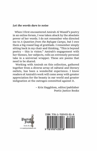 Amirah Al Wassif is an eye opener. Her poetry pulls no punches - a vision of a world turned on its head, through no fault of those who must reside there. These are the words of one who has experienced more than her age would indicate. Her engagement with her themes, her subjects, rolls an extremely personal take in a universal wrapper. These are poems that need to be shared. Readers will come away with greater appreciation for the beauty in our world and greater indignation at the outrages committed against it.