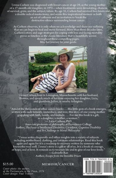 Teresa Carlson was diagnosed with breast cancer at age 29, as the young mother a 17-month-old daughter, in 1972--when treatments were devastating; chances of survival, grim; and the subject, taboo. By age 35, Carlson had survived two bouts and a double radical mastectomy, and wrote this inspirational memoir as both an act of catharsis and an invitation to break the destructive silence surrounding breast cancer. As Carlson observes, it is only when we acknowledge and share our suffering that we can begin to heal and move forward. More than three decades later, Carlson's story and sage strategies for coping with loss and facing mortality prove as timeless as the classic literature that is beautifully woven throughout these compelling pages. May her journey be your guide.