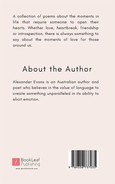 A collection of poems about the moments in life that require someone to open their hearts. Whether love, heartbreak, friendship or introspection, there is always something to say about the moments of love for those around us.