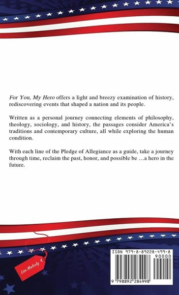 A Journey Through the Heart of America-One Line at a Time. In For You, My Hero (2nd Edition), author Lisa Malooly takes readers on an extraordinary personal and historical journey that re-examines the Pledge of Allegiance-line by line-with fresh eyes, humor, reverence, and a deep desire to understand what it truly means to be American. Through the lens of each phrase in the Pledge, Malooly dissects the core values of liberty, unity, justice, and faith, exploring how these ideals have evolved, been tested, and redefined across generations. Born and raised in Texas and deeply rooted in small-town values, Lisa Malooly grew up reciting the Pledge in school without grasping its full meaning-until a moment of profound realization after 9/11 awakened her sense of patriotism. That moment gave rise to this book: a blend of memoir, historical storytelling, cultural commentary, and civic reflection. This second edition includes updated historical insights, deeper philosophical connections, and a more vibrant call to civic understanding and unity in today's divided world. Each chapter unpacks a single phrase from the Pledge of Allegiance, such as:"I pledge allegiance"-What does it mean to pledge in an age of skepticism? "To the flag"-A look at flag etiquette, symbolism, and the untold story behind its evolution. "Of the United States of America"-Exploring the melting pot of cultures, hyphenated identities, and the Oath of Allegiance. "Under God"-A candid reflection on faith, freedom, and America's spiritual roots. "With liberty and justice for all"-A powerful, sometimes painful, examination of the nation's pursuit of equality. From anecdotes of misheard lyrics in the national anthem ("dawnzerly light"), to comparing presidential inaugural speeches from George Washington to George W. Bush, Malooly uses wit and wisdom to make history accessible and deeply personal. The book revisits pivotal moments-from the birth of the Constitution to the making of "The Star-Spangled Banner," from Betsy Ross's needle to Bob Heft's high school flag design that became a national symbol. Along the way, she shares hidden gems of history:Why the turkey almost became our national bird. What the thirteen folds of the American flag represent during a military funeral. How doughnuts became a symbol of democracy in war zones. The real story behind the 9/11 flag and how it mysteriously resurfaced. Why the Founding Fathers considered the U.S. a republic, not a democracy. But this book is more than just a history lesson.