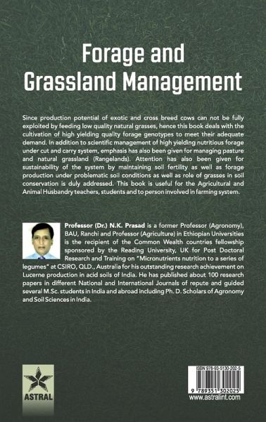 Since production potential of exotic and cross breed cows can not be fully exploited by feeding low quality natural grasses, hence this book deals with the cultivation of high yielding quality forage genotypes to meet their adequate demand. In addition to scientific management of high yielding nutritious forage under cut and carry system, emphasis has also been given for managing pasture and natural grassland (Rangelands). Attention has also been given for sustainability of the system by maintaining soil fertility as well as forage production under problematic soil conditions as well as role of grasses in soil conservation is duly addressed. This book is useful for the Agricultural and Animal Husbandry teachers, students and to person involved in farming system.