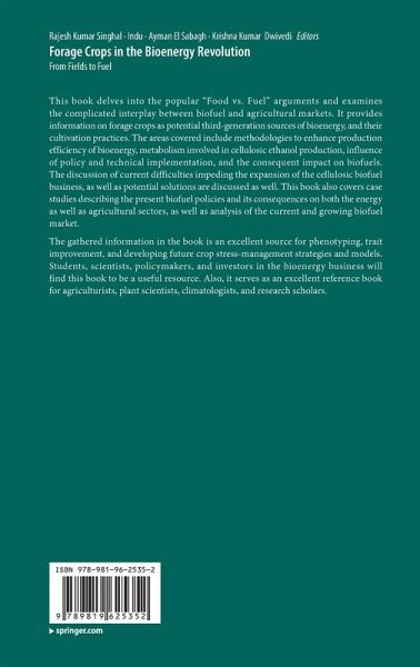 This book delves into the popular "Food vs. Fuel" arguments and examines the complicated interplay between biofuel and agricultural markets. It provides information on forage crops as potential third-generation sources of bioenergy, and their cultivation practices. The areas covered include methodologies to enhance production efficiency of bioenergy, metabolism involved in cellulosic ethanol production, influence of policy and technical implementation, and the consequent impact on biofuels. The discussion of current difficulties impeding the expansion of the cellulosic biofuel business, as well as potential solutions are discussed as well. This book also covers case studies describing the present biofuel policies and its consequences on both the energy as well as agricultural sectors, as well as analysis of the current and growing biofuel market.