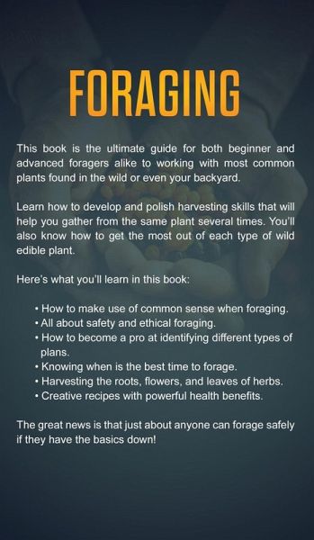 Have you ever wanted to forage but have no idea how to do it safely and responsibly? This book is the ultimate guide for both beginner and advanced foragers alike to working with most common plants found in the wild or even your backyard. Learn how to develop and polish harvesting skills that will help you gather from the same plant several times. You'll also know how to get the most out of each type of wild edible plant. Here's what you'll learn in this book: How to make use of common sense when foraging. All about safety and ethical foraging. How to become a pro at identifying different types of plans. Knowing when is the best time to forage. Harvesting the roots, flowers and leaves of herbs. Creative recipes with powerful health benefits. The great news is that just about anyone can forage safely if they have the basics down.