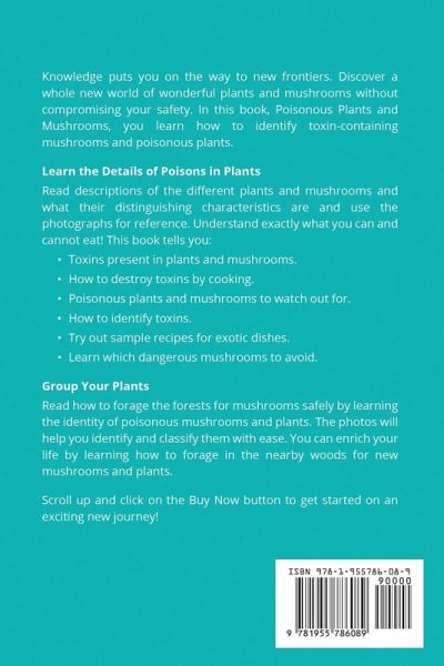 Knowledge puts you on the way to new frontiers. Discover a whole new world of wonderful plants and mushrooms without compromising your safety. In this book, Poisonous Plants and Mushrooms, you learn how to identify toxin-containing mushrooms and poisonous plants. Learn the Details of Poisons in Plants Read descriptions of the different plants and mushrooms and what their distinguishing characteristics are and use the photographs for reference. Understand exactly what you can and cannot eat! This book tells you: Toxins present in plants and mushrooms. How to destroy toxins by cooking ? Poisonous plants and mushrooms to watch out for ? How to identify toxins ? Try out sample recipes for exotic dishes. Learn which dangerous mushrooms to avoid. Group Your Plants Read how to forage the forests for mushrooms safely by learning the identity of poisonous mushrooms and plants. The photos will help you identify and classify them with ease. You can enrich your life by learning how to forage in the nearby woods for new mushrooms and plants.