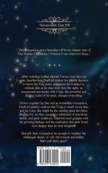 ¿ A Numen Chronicles Companion Story ¿ This companion story branches off from chapter 9 of The Numen Chronicles Volume Four: Demon's Bane After watching Luther choose Varana over him yet again, heartbroken Danford makes the painful decision to leave the Yule party and spend the holidays in solitude. But as he slips away into the night, an unexpected encounter with Freja, the powerful and alluring Luna of his pack, changes everything. Drawn together by fate and an irresistible connection, Danford quickly realizes that Freja is much more than just his Luna-she might be the missing piece he's been longing for. As they navigate a whirlwind of emotions, desire, and pack traditions, Danford must grapple with his growing feelings and the realization that their bond runs deeper than he ever imagined. But will their connection be enough to weather the challenges ahead, or will old wounds and hidden fears pull them apart? ¿ Werewolf Romance ¿ Omega x Alpha ¿ Bisexual MC ¿ Fated Mates ¿ (CW: explicit sexual content, dark fantasy themes, and mature subject matter) **Companion Stories are standalone tales that dive into a side character's personal life or past. They don't affect the main story but add depth to the character or world.**