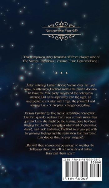 ¿ A Numen Chronicles Companion Story ¿ This companion story branches off from chapter 9 of The Numen Chronicles Volume Four: Demon's Bane After watching Luther choose Varana over him yet again, heartbroken Danford makes the painful decision to leave the Yule party and spend the holidays in solitude. But as he slips away into the night, an unexpected encounter with Freja, the powerful and alluring Luna of his pack, changes everything. Drawn together by fate and an irresistible connection, Danford quickly realizes that Freja is much more than just his Luna-she might be the missing piece he's been longing for. As they navigate a whirlwind of emotions, desire, and pack traditions, Danford must grapple with his growing feelings and the realization that their bond runs deeper than he ever imagined. But will their connection be enough to weather the challenges ahead, or will old wounds and hidden fears pull them apart? ¿ Werewolf Romance ¿ Omega x Alpha ¿ Bisexual MC ¿ Fated Mates ¿ (CW: explicit sexual content, dark fantasy themes, and mature subject matter) **Companion Stories are standalone tales that dive into a side character's personal life or past. They don't affect the main story but add depth to the character or world.**