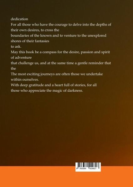 dedicationFor all those who have the courage to delve into the depths of their own desires, to cross theboundaries of the known and to venture to the unexplored shores of their fantasiesto ask.May this book be a compass for the desire, passion and spirit of adventurethat challenge us, and at the same time a gentle reminder that theThe most exciting journeys are often those we undertake within ourselves.With deep gratitude and a heart full of stories, for allthose who appreciate the magic of darkness.