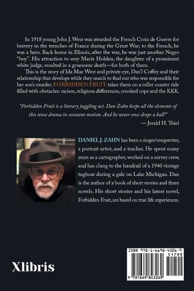 In 1918 young John J. West was awarded the French Croix de Guerre for bravery in the trenches of France during the Great War; to the French, he was a hero. Back home in Illinois, after the war, he was just another Negro "boy". His attraction to sexy Marie Holden, the daughter of a prominent white judge, resulted in a gruesome death-for both of them. This is the story of Ida Mae West and private eye, Dan'l Coffey and their relationship that develops while they search to find out who was responsible for her son's murder. FORBIDDEN FRUIT takes them on a roller coaster ride filled with obstacles: racism, religious differences, crooked cops and the KKK. "Forbidden Fruit is a literary juggling act. Dan Zahn keeps all the elements of this tense drama in constant motion. And he never once drops a ball!" - Jerald H. Thiel