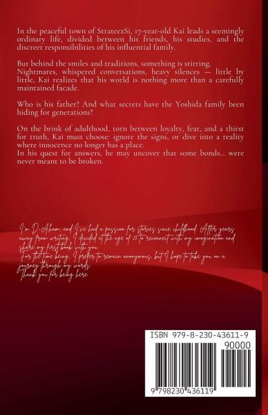 In a world where politics and crime blur behind deceptive appearances, Kai, a teenager from an influential family, longs for an ordinary life. But beneath the polished façade of familial perfection lie far darker secrets. While digging into his parents' past, he uncovers a truth marked by vengeance and blood. This search draws the attention of powerful forces, and to protect him, his father hires a bodyguard-an enigmatic and ambiguous man whose true intentions remain unclear. Trapped in a game of manipulation where every truth conceals a new lie, Kai unwittingly drags his friends into a downward spiral. As revelations unfold, he finds himself caught in a moral conflict where the line between good and evil fades. A prisoner of this dangerous game, will he manage to seize control of his own fate, or will he remain a mere pawn in a story that, though his own, is far greater than him?