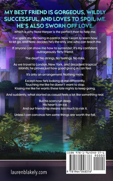 My best friend is gorgeous, wildly successful, and loves to spoil me. He's also sworn off love. Which is why Nate Harper is the perfect man to help me. I've spent my life being in control. Now I want to learn how to let go, and Nate decides he's the only one who can teach me. If anyone can show me how to surrender, it's my confident, outrageously flirty friend. The deal? No strings. No feelings. No risks. As we travel to London, New York, and decadent tropical islands, he proves just how good giving in can feel. It's only an arrangement. Nothing more. Except now he's looking at me differently. Touching me like he doesn't want to stop. Kissing me like he wants these late nights to keep going. And suddenly, what started as casual feels a lot like something real. But his scars run deep. His heart's on ice. And our friendship means too much to risk it. Unless I can convince him some things are worth the fall.