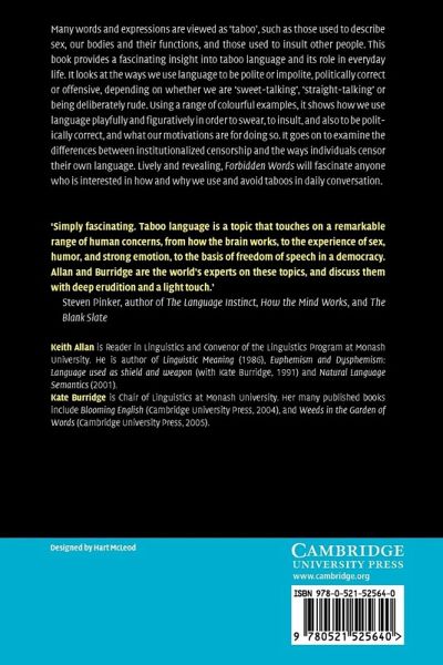 This book provides a fascinating insight into taboo language and its role in everyday life. It looks at the ways we use language to be polite or impolite, politically correct or offensive, depending on whether we are'sweet-talking','straight-talking'or being deliberately rude. Using a range of colourful examples, it shows how we use language in order to swear, to insult, and also to be politically correct. Lively and revealing, Forbidden Words will fascinate anyone who is interested in how and why we use and avoid taboos in daily conversation.