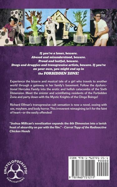 If you're a loner, beware. Abused and misunderstood, beware. Proud and lustful, beware. Dregs and druggies and transgressive artists, beware. If you're on your own, you might end up in the FORBIDDEN ZONE! Experience the bizarre and musical tale of a girl who travels to another world through a gateway in her family's basement. Follow the dysfunctional Hercules Family into the erotic and hellish catacombs of the Sixth Dimension. Meet the sinister and scintillating residents of the Forbidden Zone and party down with the Mystic Knights of the Oingo Boingo! Richard Elfman's transgressive cult sensation is now a novel, oozing with sex, mayhem, and body horror. This irreverent reimagining isn't for the faint of heart-or the easily offended!