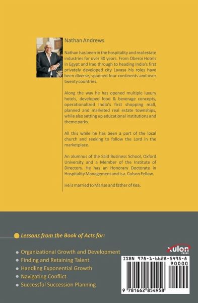 Lessons from the Book of Acts for: · Organizational Growth and Development · Finding and Retaining Talent · Handling Exponential Growth · Navigating Conflict · Successful Succession Planning Nathan has been in the hospitality and real estate industries for over 30 years. From Oberoi Hotels in Egypt and Iraq through to heading India's first privately developed city Lavasa his roles have been diverse, spanned four continents and over twenty countries. Along the way he has opened multiple luxury hotels, developed food & beverage concepts, operationalized India's first shopping mall, planned and marketed real estate townships, while also setting up educational institutions and theme parks. All this while he has been a part of the local church and seeking to follow the Lord in the marketplace. An alumnus of the Said Business School, Oxford University and a Member of the Institute of Directors. He has an Honorary Doctorate in Hospitality Management and is a Colson Fellow. He is married to Marise and father of Kea.