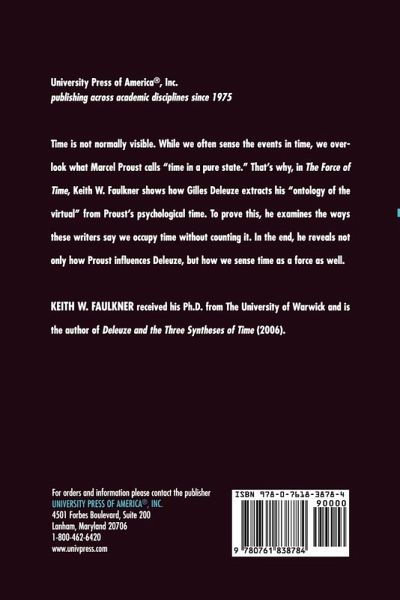 Time is not normally visible. While we often sense the events in time, we overlook what Marcel Proust calls 'time in a pure state.' That's why, in The Force of Time, Keith W. Faulkner shows how Gilles Deleuze extracts his 'ontology of the virtual' from Proust's psychological time. To prove this, he examines the ways these writers say we occupy time without counting it. In the end, he reveals not only how Proust influences Deleuze, but how we sense time as a force as well.