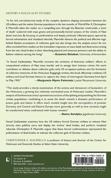 During the final weeks of World War II, the American army discovered multiple atrocity sites and mass graves containing the dead bodies of Jews, slave laborers, POWs and other victims of Nazi genocide and mass murder. Instead of simply reburying these victims, American Military Government carried out a series of highly ritualized "forced confrontations" towards German civilians centered on the dead bodies themselves. The Americans forced nearby German townspeople to witness the atrocity site, disinter the bodies, place them in coffins, parade these bodies through the town and lay them to rest in town cemeteries. At the conclusion of the ceremony in the cemetery in the presence of dead bodies, the Americans accused the assembled German civilians and Germany as whole of collective guilt for the crimes of the Nazi regime. This landmark study places American forced confrontations into the emerging field of dead body politics or necropolitics. Drawing on the theoretical work of Katherine Verdery and others, the book argues that forced confrontation represented a politicization of dead bodies aimed at the ideological goals of accusing Germans and Germany of collective guilt for the war, Nazism and Nazi genocide. These were not top-down Allied policy decisions. Instead, they were initiated and carried out at the field command level and by ordinary U.S. field officers and soldiers appalled and angered by the level of violence and killing they discovered in small German towns in April and May 1945. This study of the experience of war and forced confrontations around dead bodies compels readers to rethink the nature of the American soldier fighting in Germany in 1945 and the evolution, practice and purpose of American political and ideological ideas of German collective guilt.