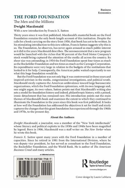 Thirty years since it was first published, Macdonald's masterful book on the Ford Foundation remains the only book-length account of this institution that has been published. Despite the calls for a book carrying on the story from 1956 on the part of Richard Magat and McGeorge Bundy, that book has yet to be written. In his stimulating introduction to this new edition, Francis Sutton suggests why this is so. The Foundation, he observes, has never again aroused as much public interest as it did in the years Macdonald's describes. The announcement that a new program would be launched with the riches that 90 percent of the Ford Motor Company's stock would bring captured the attention of the media all across the country. Its sheer size was astounding; in 1954 the Ford Foundation spent four times as much as the Rockefeller Foundation and ten times as much as the Carnegie Corporation. Its expenditures were very large in relation to the budgets of the institutions that looked to it for help. Consequently, the American public waited expectantly to see what this huge foundation would do. But the Ford Foundation was not only big; it was controversial in those years, and inspired activism in the media, Congressional investigations, and political wrath. Macdonald nicely captures the American ambivalence toward large bureacratic organizations, which the Ford Foundation epitomizes, with its own language and, one might argue, its own values. Sutton points out that Macdonald's writing also sets a model for foundation history and indeed philanthropic history, with a poised, ironic detachment that has remained rare. His introduction points out the main themes of Macdonald's book and examines the extent to which they continue to illumine the foundation in the years since this book was first published. It looks at how well the Foundation has addressed the objectives it set for itself, and nicely captures the giant changes that this giant foundation has experienced through the 1960s and 1970s, to the present day.
