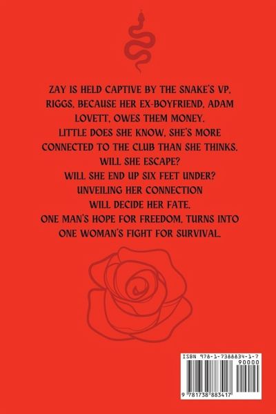 Zay is held captive by the Snake's VP, Riggs, because her ex-boyfriend, Adam Lovett, owes them money. Little does she know, she's more connected to the club than she thinks. Will she escape? Will she end up six feet under? Unveiling her connection will decide her fate. One man's hope for freedom, turns into one woman's fight for survival.