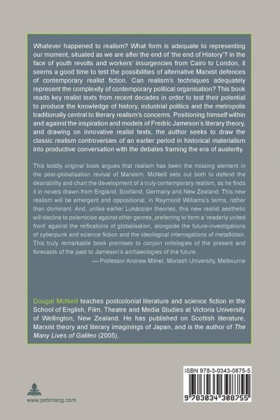 «This boldly original book argues that realism has been the missing element in the post-globalisation revival of Marxism. McNeill sets out both to defend the desirability and chart the development of a truly contemporary realism, as he finds it in novels drawn from England, Scotland, Germany and New Zealand. This new realism will be emergent and oppositional, in Raymond Williams's terms, rather than dominant. And, unlike earlier Lukácsian theories, this new realist aesthetic will decline to polemicise against other genres, preferring to form a «readerly united front» against the reifications of globalisation, alongside the future-investigations of cyberpunk and science fiction and the ideological interrogations of metafiction. This truly remarkable book promises to conjoin ontologies of the present and forecasts of the past to Jameson's archaeologies of the future.» (Professor Andrew Milner, Monash University, Melbourne)
