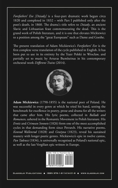 Forefathers’ Eve [Dziady] is a four-part dramatic work begun circa 1820 and completed in 1832 – with Part I published only after the poet’s death, in 1860. The drama's title refers to Dziady, an ancient Slavic and Lithuanian feast commemorating the dead. This is the grand work of Polish literature, and it is one that elevates Mickiewicz to a position among the "great Europeans" such as Dante and Goethe. With its Christian background of the Communion of the Saints, revenant spirits, and the interpenetration of the worlds of time and eternity, Forefathers’ Eve speaks to men and women of all…mehr