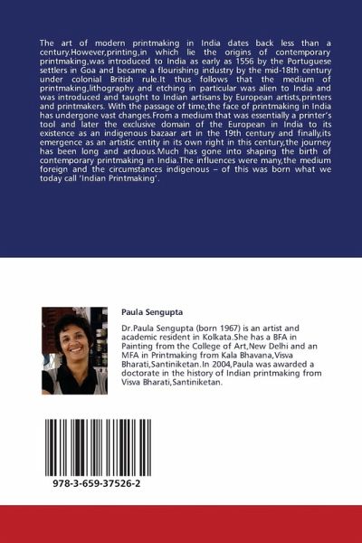 The art of modern printmaking in India dates back less than a century.However,printing,in which lie the origins of contemporary printmaking,was introduced to India as early as 1556 by the Portuguese settlers in Goa and became a flourishing industry by the mid-18th century under colonial British rule.It thus follows that the medium of printmaking,lithography and etching in particular was alien to India and was introduced and taught to Indian artisans by European artists,printers and printmakers. With the passage of time,the face of printmaking in India has undergone vast changes.From a medium that was essentially a printer's tool and later the exclusive domain of the European in India to its existence as an indigenous bazaar art in the 19th century and finally,its emergence as an artistic entity in its own right in this century,the journey has been long and arduous.Much has gone into shaping the birth of contemporary printmaking in India.The influences were many,the medium foreignand the circumstances indigenous - of this was born what we today call 'Indian Printmaking'.