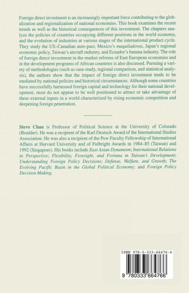 List of Tables - List of Figures - List of Acronyms - Notes on the Contributors - Introduction: Foreign Direct Investment in a Changing World; S.Chan - Auto Bargaining in Canada, 1965-87; K.P.Thomas - Maquiladorization as a Global Process; J.A.Hart - Japanese Foreign Direct Investment in East Asia: The Expanding Division of Labour and the Future of Regionalism; K.G.Machado - Industrial Upgrading and Multinational Corporations: A Bumpy Runway for Taiwan's Aircraft Industry; C.Huang - MNCs and Developmentalism: Domestic Structures as an Explanation for East Asian Dynamism; C.Clark & S.Chan - State or Market: The Development of the Ecuadorian Banana Industry; D.W.Schodt - Foreign Direct Investment in Eastern Europe: Harnessing FDI to the Transition from Plan to Market; C.H.McMillan - Foreign Direct Investment in Ghana and Cote d'Ivoire; S.McMillan - Do MNCs Matter for National Development? Contrasting East Asia and Latin America; S.Chan & C.Clark - Investment Dependence and Political Conflict in Developing Countries: A Comparative Regional Analysis; J.M.Rothgeb, Jr - References - Index