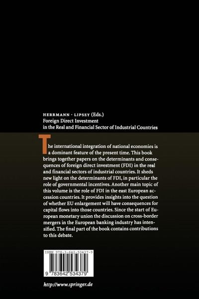The international integration of national economies is a dominant feature of the present time. This book brings together papers on the determinants and consequences of foreign direct investment (FDI) in the real and financial sectors of industrial countries. It sheds new light on the determinants of FDI, in particular the role of governmental incentives. Another main topic of this volume is the role of FDI in the east European accession countries. It provides insights into the question of whether EU enlargement will have consequences for capital flows into those countries. Since the start of European monetary union the discussion on cross-border mergers in the European banking industry has intensified. The final part of the book contains contributions to this debate.