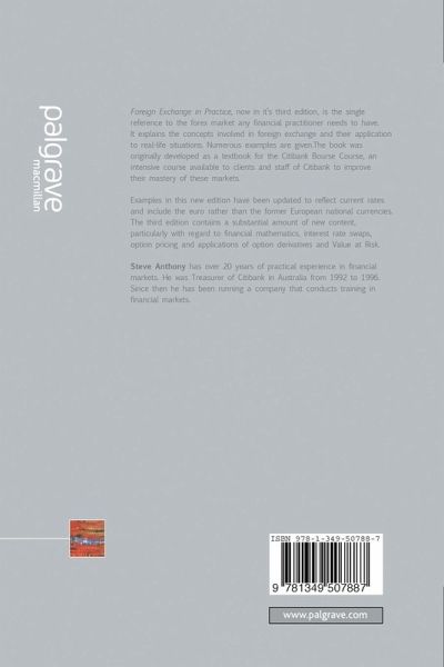 Foreign Exchange in Practice , now in its 3rd edition, is the single reference to the forex market any financial practitioner needs to have. It explains the concepts involved in foreign exchange and their application to real-life situations. Numerous examples are given. The book was originally developed as a textbook for the Citibank Bourse Course, an intensive course available to clients and staff of Citibank to improve their mastery of these markets. Examples in this edition have been updated to reflect current rates and include the Euro rather than the former European national currencies. The 3rd edition contains a substantial amount of new content particularly with regard to financial mathematics, interest rate swaps, option pricing and applications of option derivatives and Value at Risk.