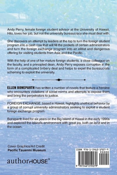 Andy Perry, female foreign student advisor at the University of Hawaii, Hilo, loves her job, but not the university bureaucracy she must deal with. She discovers an attempt by leaders at the top to turn the foreign student program into a cash cow that will fill the pockets of certain administrators and turn the foreign exchange program into an elitist and dangerous offering for visiting students from Asia and the Pacific. With the help of one of her mature foreign students, a close colleague on the faculty, and a principled dean, Andy Perry exposes corruption in the form of a complicated bribery deal and helps to expel the bureaucrats scheming to exploit the university.