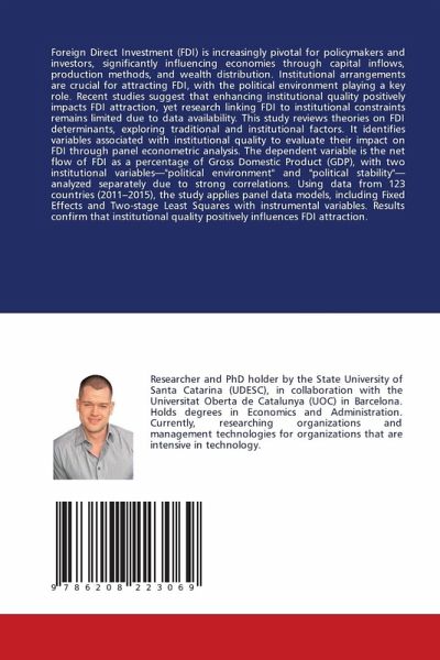 Foreign Direct Investment (FDI) is increasingly pivotal for policymakers and investors, significantly influencing economies through capital inflows, production methods, and wealth distribution. Institutional arrangements are crucial for attracting FDI, with the political environment playing a key role. Recent studies suggest that enhancing institutional quality positively impacts FDI attraction, yet research linking FDI to institutional constraints remains limited due to data availability. This study reviews theories on FDI determinants, exploring traditional and institutional factors. It identifies variables associated with institutional quality to evaluate their impact on FDI through panel econometric analysis. The dependent variable is the net flow of FDI as a percentage of Gross Domestic Product (GDP), with two institutional variables-"political environment" and "political stability"-analyzed separately due to strong correlations. Using data from 123 countries (2011-2015), the study applies panel data models, including Fixed Effects and Two-stage Least Squares with instrumental variables. Results confirm that institutional quality positively influences FDI attraction.