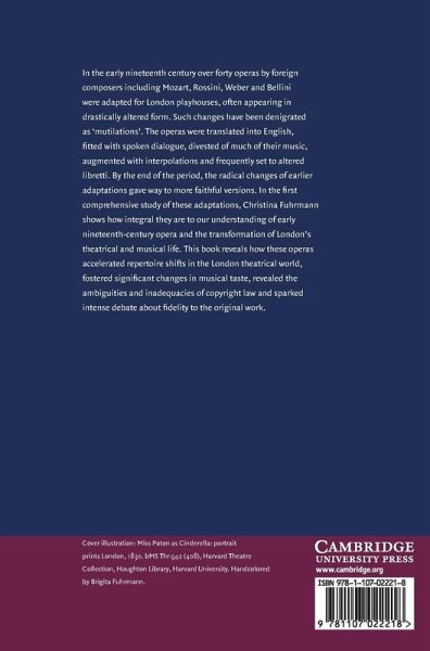 In the early nineteenth century over forty operas by foreign composers, including Mozart, Rossini, Weber and Bellini, were adapted for London playhouses, often appearing in drastically altered form. Such changes have been denigrated as 'mutilations'. The operas were translated into English, fitted with spoken dialogue, divested of much of their music, augmented with interpolations and frequently set to altered libretti. By the end of the period, the radical changes of earlier adaptations gave way to more faithful versions. In the first comprehensive study of these adaptations, Christina Fuhrmann shows how integral they are to our understanding of early nineteenth-century opera and the transformation of London's theatrical and musical life. This book reveals how these operas accelerated repertoire shifts in the London theatrical world, fostered significant changes in musical taste, revealed the ambiguities and inadequacies of copyright law and sparked intense debate about fidelity to the original work.