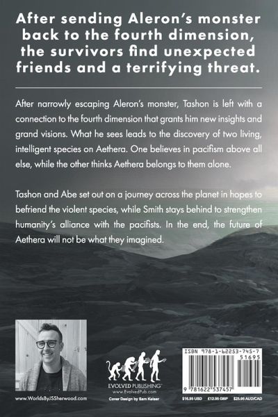 After sending Aleron's monster back to the fourth dimension, the survivors find unexpected friends and a terrifying threat.WINNER: Pinnacle Book Achievement Award, Fall 2022 - Best Science Fiction After narrowly escaping Aleron's monster, Tashon is left with a connection to the fourth dimension that grants him new insights and grand visions. What he see leads to the discovery of two living, intelligent species on Aethera. One believes in pacifism above all else, while the other thinks Aethera belongs to them alone. Tashon and Abe set out on a journey across the planet in hopes to befriend the violent species, while Smith stays behind to strengthen humanity's alliance with the pacifists. In the end, the future of Aethera will not be what they imagined. EVOLVED PUBLISHING PRESENTS an epic science fiction adventure, with Book 2 of the 9-book series, "This Foreign Universe." Discover new worlds, new civilizations, and new mysteries from the great unknown.