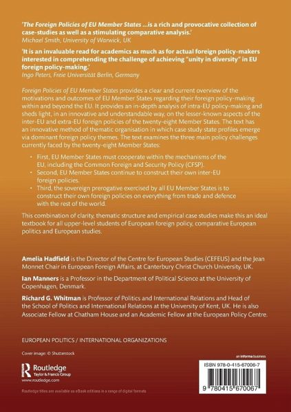 Foreign Policies of EU Member States provides a clear and current overview of the motivations and outcomes of EU Member States regarding their foreign policy-making within and beyond the EU. It provides an in-depth analysis of intra-EU policy-making and sheds light, in an innovative and understandable way, on the lesser-known aspects of the inter-EU and extra-EU foreign policies of the twenty-eight Member States. The text has an innovative method of thematic organisation in which case study state profiles emerge via dominant foreign policy themes. The text examines the three main policy challenges currently faced by the twenty-eight Member States: First, EU Member States must cooperate within the mechanisms of the EU, including the Common Foreign and Security Policy (CFSP). Second, EU Member States continue to construct their own inter-EU foreign policies. Third, the sovereign prerogative exercised by all EU Member States is to construct their own foreign policies on everything from trade and defence with the rest of the world. This combination of clarity, thematic structure and empirical case studies make this an ideal textbook for all upper-level students of European foreign policy, comparative European politics and European studies.