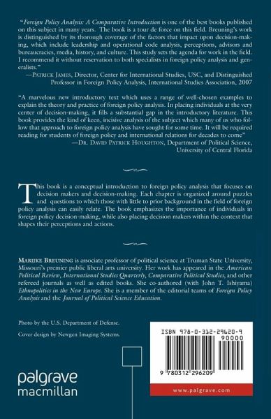 "Well-known scholar and journal editor Marijke Breuning provides a welcome new text to the field of foreign policy analysis. Aiming the book at those with no prior study of international relations, she uses both U.S. and other country examples to introduce students to the comparative study of foreign policy decision making.By posing interesting questions and puzzles, she conveys both concepts and theories in an accessible way.Our field s curricular literature has just been enriched, and those wanting to teach an undergraduate foreign policy analysis course owe it to themselves and their students to check out this volume."