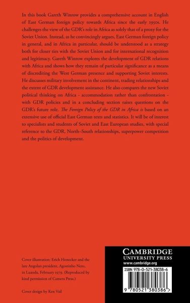 In this 1990 book Gareth Winrow provides a comprehensive account in English of East German foreign policy towards Africa since the early 1950s. He challenges the view of the GDR's role in Africa as solely that of a proxy for the Soviet Union. Instead, as he convincingly argues, East German foreign policy in general, and in Africa in particular, should be understood as a strategy both for closer ties with the Soviet Union and for international recognition and legitimacy. The author explores the development of GDR relations with Africa and shows how they remain of particular significance as a means of discrediting the West German presence and supporting Soviet interests. The Foreign Policy of the GDR in Africa is based on an extensive use of official East German texts and statistics. It will be of interest to specialists and students of Soviet and East European studies, with special reference to the GDR, North-South relationships, superpower competition and the politics of development.