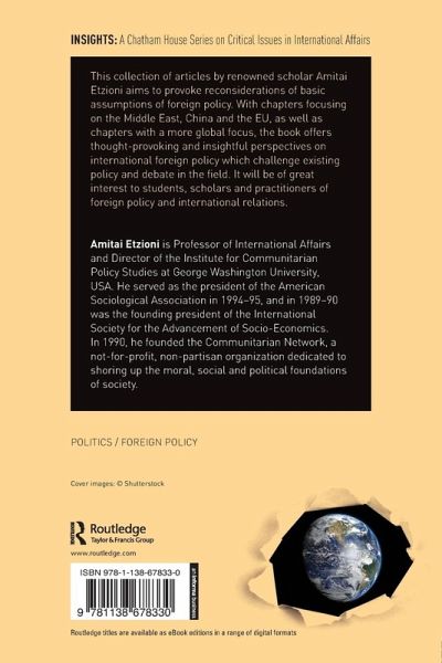 This collection of essays by renowned scholar Amitai Etzioni aims to provoke reconsiderations of basic assumptions of foreign policy by students, academics and practitioners. With chapters focusing on the Middle East, China and the EU, as well as articles with a more global focus, the book offers thought-provoking and insightful perspectives on international foreign policy which challenge existing academic debate in the field. It will be of great interest to students, scholars and practitioners of foreign policy and international relations.