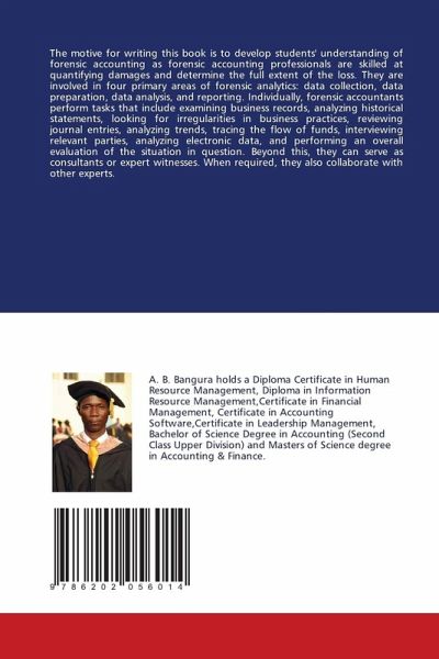 The motive for writing this book is to develop students' understanding of forensic accounting as forensic accounting professionals are skilled at quantifying damages and determine the full extent of the loss. They are involved in four primary areas of forensic analytics: data collection, data preparation, data analysis, and reporting. Individually, forensic accountants perform tasks that include examining business records, analyzing historical statements, looking for irregularities in business practices, reviewing journal entries, analyzing trends, tracing the flow of funds, interviewing relevant parties, analyzing electronic data, and performing an overall evaluation of the situation in question. Beyond this, they can serve as consultants or expert witnesses. When required, they also collaborate with other experts.