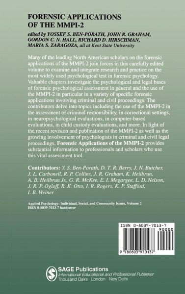 Research and practice on a widely used psychological test in forensic psychology - the MMPI-2 - are examined and integrated in this volume. Chapters discuss the psychological and legal bases of forensic psychological assessment in general, and the use of the MMPI-2 in particular, in a variety of specific forensic applications involving criminal and civil proceedings.