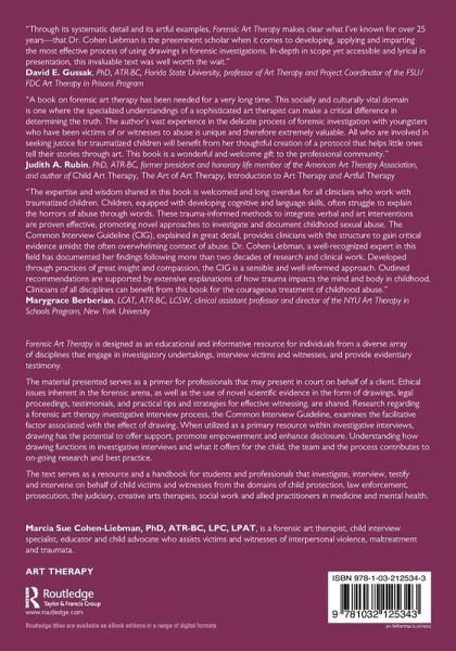 Forensic Art Therapy is designed as an educational and informative resource for individuals from a diverse array of disciplines that engage in investigatory undertakings, interview victims and witnesses, and provide evidentiary testimony.
