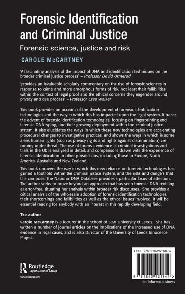 This book provides an account of the development of forensic identification technologies and the way in which this has impacted upon the legal system. It traces the advent of forensic identification technologies, focusing on fingerprinting and forensic DNA typing, and their growing deployment within the criminal justice system. It also elucidates the ways in which these new technologies are accelerating procedural changes to investigative practices, and shows the ways in which in some areas human rights (such as privacy rights and rights against discrimination) are coming under threat. The use of forensic evidence in criminal investigations and trials is analysed in detail. This book uncovers the way in which this new reliance on forensic technologies has gained a foothold within the criminal justice system, and the risks and dangers that this can pose. The National DNA Database provides a particular focus of attention. The author seeks to move beyond an approach that has seen forensic DNA profiling as error free, situating her analysis within broader risk discourses.