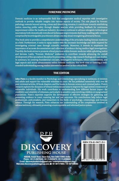 This book aims to provide a comprehensive understanding of the principles leading forensic medicine as a field. Furthermore, it seeks to equip readers with the necessary knowledge and skills required for investigating criminal cases through scientific methods. Moreover, it intends to emphasize the importance of accurate documentation and collection of evidence during medico-legal investigations. Fourthly, the book strives to promote ethical practices within forensic medicine while upholding justice and fairness. Lastly, "Forensic Medicine" endeavors to contribute towards advancing the overall development of this specialized discipline by presenting cutting-edge research findings and case studies. In summary, by covering foundational concepts, investigative techniques, ethics considerations, and legal aspects and recent advancements within forensic medicine; this book aims at fostering a well- rounded understanding among readers interested or involved in this critical field.