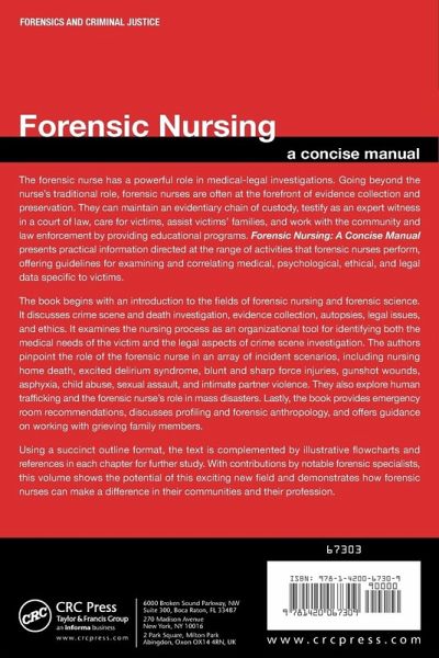 The forensic nurse has a powerful role in medical-legal investigations. This volume presents practical information directed at the range of activities that forensic nurses perform. It discusses crime scene and death investigation, evidence collection, autopsies, legal issues, and ethics. The authors pinpoint the role of the forensic nurse in an array of incident scenarios, provide emergency room recommendations, discuss profiling and forensic anthropology, and offer guidance on working with grieving family members. Using a succinct outline format, the text is complemented by illustrative flowcharts and references for further study.
