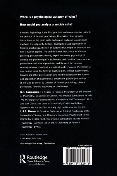 Forensic Psychology explains the history and application of the discipline. It details the various kinds of psychologist involved in the field, the sort of evidence each might produce, and how it can be applied. The authors cover topics such as: * offender profiling * psychometric testing * expert testimony * psychological autopsy * polygraph testing * professional and ethical problems * training needs A handy reference tool and a practical guide, Forensic Psychology is essential reading for forensic psychologists, clinical psychologists, lawyers and professionals who need to understand the nature and application of psychological evidence in judicial proceedings.