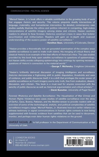 Forensic Rhetorics, Satellite Surveillance, and the Visualization of War Crimes and Human Rights Violations uses critical forensic perspectives in order to assess the strengths and weaknesses of governmental, NGO, and celebrity usage of satellite surveillance systems. The author contends that while many defenders of this use of satellite imagery often argue that these images speak for themselves, they are in fact contested objects that are contextualized and recontextualized in salient foreign policy controversies.