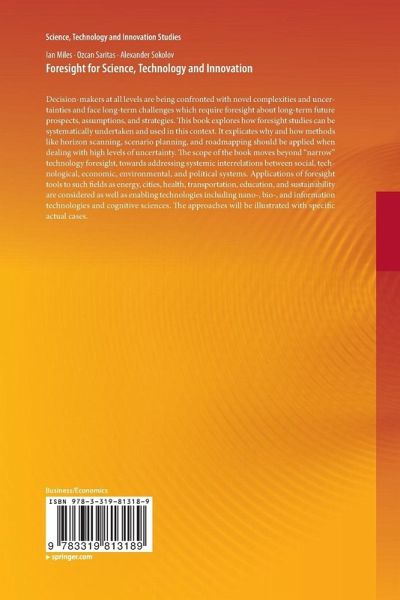 Decision-makers at all levels are being confronted with novel complexities and uncertainties and face long-term challenges which require foresight about long-term future prospects, assumptions, and strategies. This book explores how foresight studies can be systematically undertaken and used in this context. It explicates why and how methods like horizon scanning, scenario planning, and roadmapping should be applied when dealing with high levels of uncertainty. The scope of the book moves beyond "narrow" technology foresight, towards addressing systemic interrelations between social, technological, economic, environmental, and political systems. Applications of foresight tools to such fields as energy, cities, health, transportation, education, and sustainability are considered as well as enabling technologies including nano-, bio-, and information technologies and cognitive sciences. The approaches will be illustrated with specific actual cases.