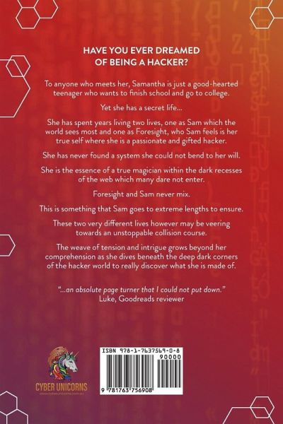 HAVE YOU EVER DREAMED OF BEING A HACKER? To anyone who meets her, Samantha is just a good-hearted teenager who wants to finish school and go to college. Yet she has a secret life... She has spent years living two lives, one as Sam which the world sees most and one as Foresight, who Sam feels is her true self where she is a passionate and gifted hacker. She has never found a system she could not bend to her will. She is the essence of a true magician within the dark recesses of the web which many dare not enter. Foresight and Sam never mix. This is something that Sam goes to extreme lengths to ensure. These two very different lives however may be veering towards an unstoppable collision course. The weave of tension and intrigue grows beyond her comprehension as she dives beneath the deep dark corners of the hacker world to really discover what she is made of.