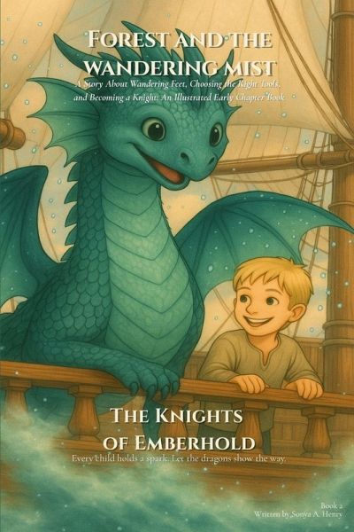 Forest and the Wandering Mist is an illustrated early chapter book about a boy whose wandering feet carry him farther than he ever intended. When a day at the beach becomes overwhelming, Forest drifts away from the shore and finds himself aboard a mysterious ship, sailing straight into a fog-filled sea. Guided by Naiya, a calm and watchful dragon, Forest begins the Spark Trials, learning to slow down, listen to his body, and stay grounded when big sensations and big feelings begin to pull him away. Through shimmering mist, steady breaths, and small brave choices, Forest discovers tools that help him stay present, make safe decisions, and face new experiences without losing himself along the way. His journey reminds readers that courage does not always mean rushing forward. Sometimes it means pausing, noticing, and choosing where to place your feet. Written for children who experience sensory overwhelm, anxiety, or difficulty staying aware of their surroundings, Forest and the Wandering Mist blends lyrical storytelling with practical themes of self-awareness, emotional regulation, and safety. A story for readers who feel deeply, wander inward, and are learning how to find their way back.