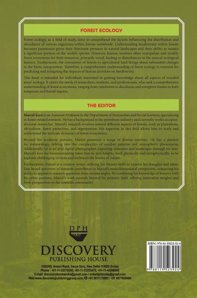 Forest ecology, as a field of study, aims to comprehend the factors influencing the distribution and abundance of various organisms within forests worldwide. Understanding biodiversity within forests becomes paramount given their dominant presence in natural landscapes and their ability to sustain a significant portion of the world's species. However, human societies often manipulate and modify forest ecosystems for their resources, primarily wood, leading to disturbances in the natural ecological balance. Furthermore, the conversion of forests to agricultural land brings about substantial changes in the biotic composition. Therefore, a comprehensive understanding of forest ecology is essential for predicting and mitigating the impacts of human activities on biodiversity. This book is intended for individuals interested in gaining knowledge about all aspects of wooded areas' ecology. It caters the needs of researchers, students, and professionals, who seek a comprehensive understanding of forest ecosystems, ranging from rainforests to deciduous and evergreen forests in both temperate and boreal regions.